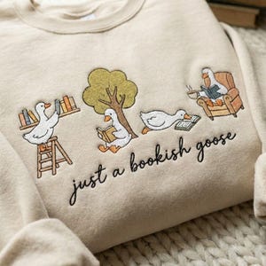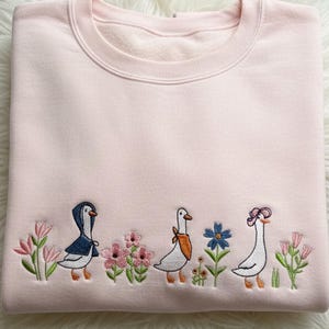 Thrifted Geese Embroidered Sweatshirt, Vintage Grandma Geese Shirt, Cottagecore Folk Art Goose, Cozy Retro Animal Tee, Animal Lover Gift